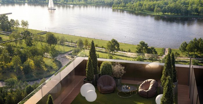 Новый жилой район спроектирован в концепции «двор без машин». На закрытой охраняемой территории разместятся подземные паркинги, зоны для отдыха, дорожки для бега, спортивные площадки и зеленые зоны общей площадью 19,5 га. Жители смогут прогуливаться в центральном парке и по благоустроенной набережной Москвы-реки.